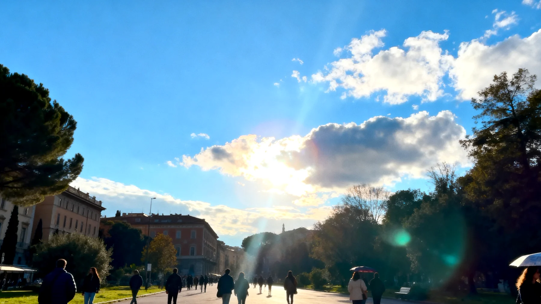 Le temperature si manterranno in un range piuttosto ristretto, tra 13.3 e 15.3 gradi, con un’escursione termica minima che indica condizioni abbastanza stabili durante l’arco della giornata. L’aspetto più interessante riguarda la copertura nuvolosa, che si attesterà al 61.8%: significa che il cielo sarà solo parzialmente coperto, con buone possibilità di vedere sprazzi di sole alternarsi alle nuvole. Questo renderà la giornata visivamente più gradevole rispetto alle grigie Milano e Roma.